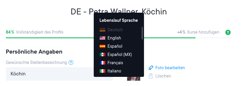 Kann ich die Sprache meines Lebenslaufs ändern?