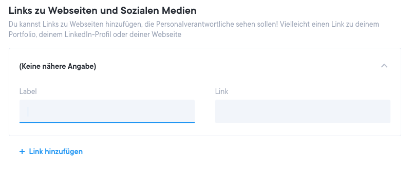 Links sind etwas Großartiges und tragen der Tatsache Rechnung, dass der Platz auf deinem Lebenslauf begrenzt ist. Füge auch zusätzliche Informationen mit einem Link zu deinen Sozialen Profilen, deiner persönlichen Website oder deinem Online-Portfolio hinzu.