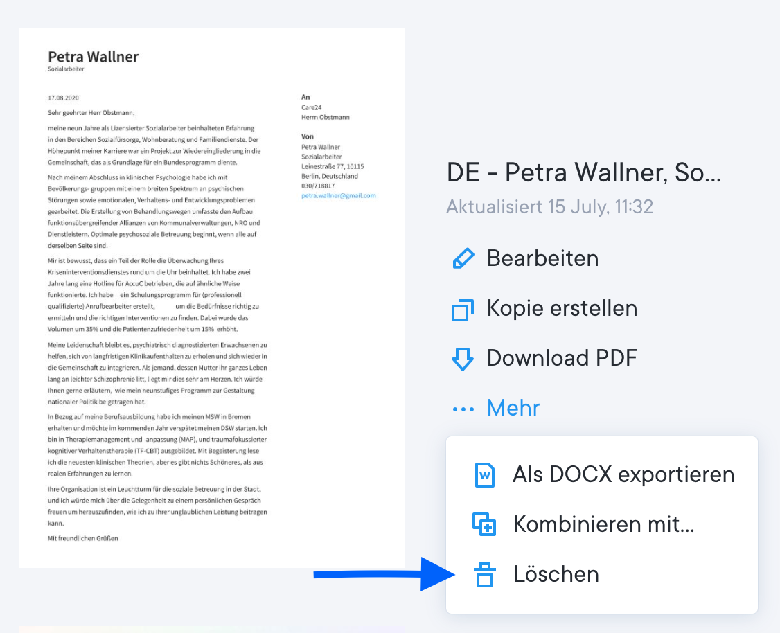 Wie lösche ich ein Bewerbungsschreiben?